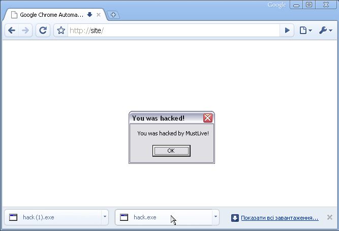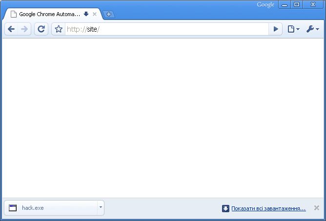 Раніше мені доводилося стикатися з уразливостями, що призводили до автоматичного скачування довільних файлів з Інтернету, зокрема exe-файлів, та з подальшим їх запуском. Це було пов’язано з уразливостями переповнення буферу в браузерах, зокрема в Internet Explorer. Але вперше мені довелося побачити подібну уразливість, яка є частиною функціоналу браузеру. Дана уразливість була презентована в брузері Google Chrome. Враховучи, що в усіх інших браузерах, з якими я працював, я не бачив такої уразливості, то я заявляю, що Chrome є першими браузером з дірявою функцією скачування файлів (коли атака йде саме через функцію скачування).